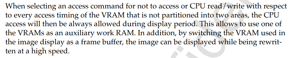 What is the implication here? An auxiliary work RAM? How can VRAM act as a framebuffer when dealing with cell scroll screens? Does this imply that parts of the display can be read back into memory?